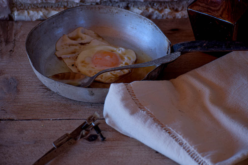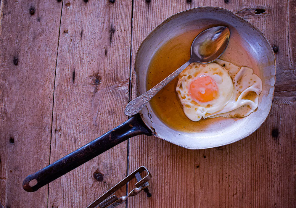 5Στο τηγάνι από το τυρί ρίχνουμε λίγο ελαιόλαδο και τηγανίζουμε τα αυγά μας μελάτα. (θέλουμε να τρέξει ο κρόκος στα μακαρόνια).