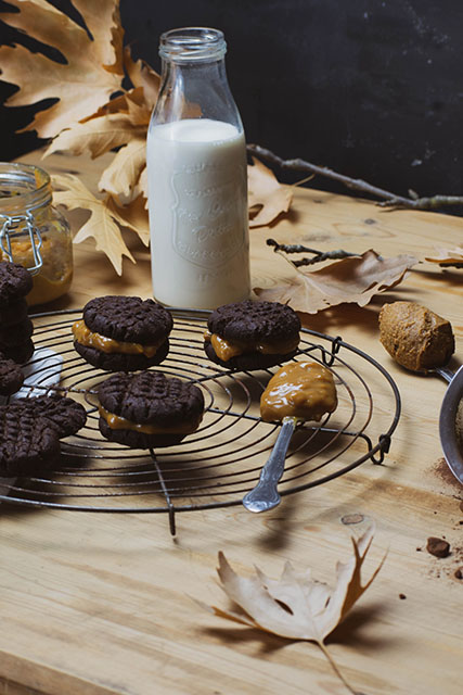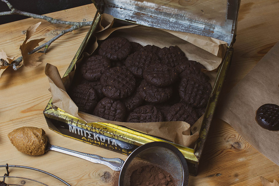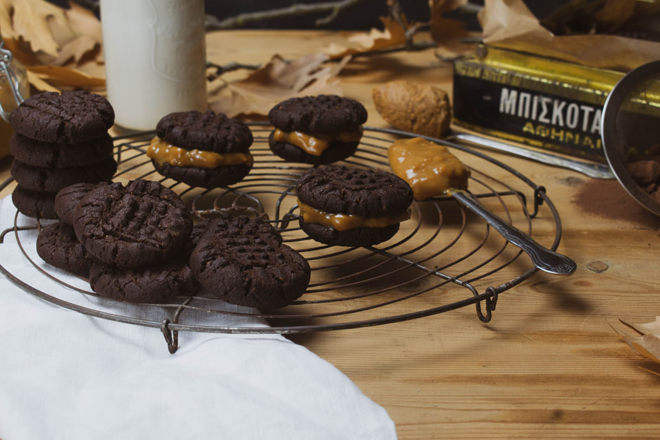 Το φυστικοβούτυρο με το κακάο είναι τέλειος συνδυασμός και αν έχετε λίγο παραπάνω χρόνο αξίζει να βράσετε ένα ζαχαρούχο γάλα για δυο ώρες περίπου και να φτιάξετε καραμέλα που τους ταιριάζει απίστευτα. Αλλά και χωρίς αυτό πιστέψτε με είναι έρωτας. Όλοι νομίζω έχουμε αδυναμία στα ωραία μπισκότα και όλοι θα θέλαμε να έχουμε πάντα στο σπίτι μας έτοιμα για μια μικρή λιγούρα. Στο φούρνισμά τους το σπίτι θα μοσχοβολήσει και χωρίς πολλά υλικά και πολύ χρόνο θα έχετε αυτές τις τέλειες μπουκίτσες που δε θα μπορείτε να αντισταθείτε.
