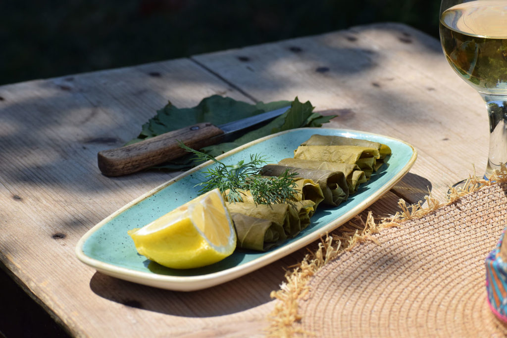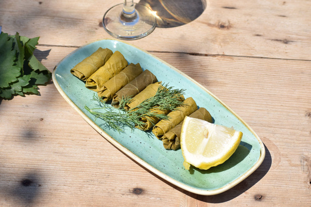 Ένα φύλλο που στα χέρια ενός μάγειρα θα δώσει έναν καταπληκτικό μεζέ που θα το συνοδεύσει. Ένα λοιπόν αμπελόφυλλο, λίγο ρύζι και πολλά φρέσκα μυρωδικά αρκούν για να δημιουργηθεί ένα ντολμαδάκι που μπορεί να φαγωθεί ζεστό ή κρύο όλες τις ώρες…