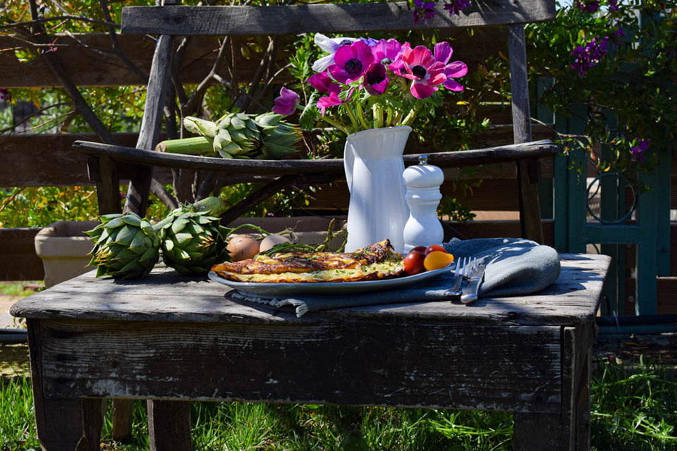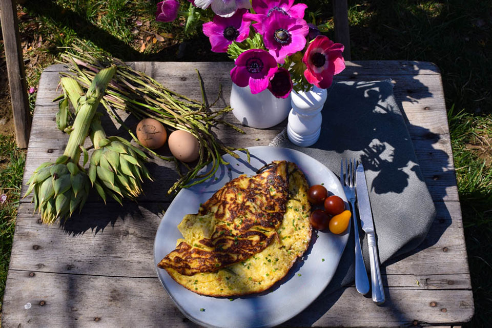Ομελέτα με άγρια σπαράγγια και αγκινάρες