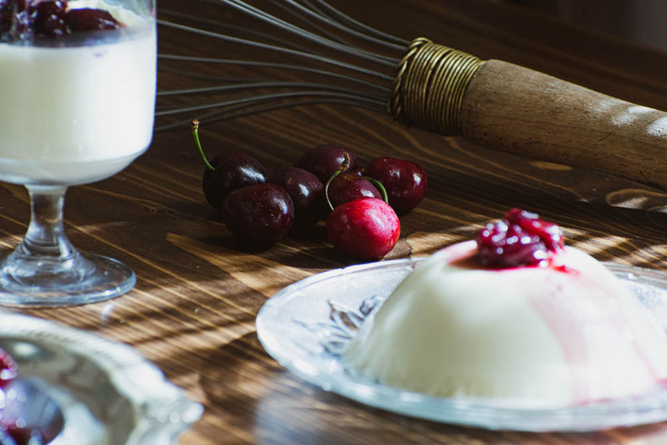 6Όταν κρυώσει η πανακότα ρίχνουμε δυο κουταλιές περίπου από τα κεράσια και σερβίρουμε. Αν θέλουμε να ξεφορμάρουμε το γλυκό μας, βυθίζουμε τα μπολάκια μας για λίγα λεπτά σε ζεστό νερό.